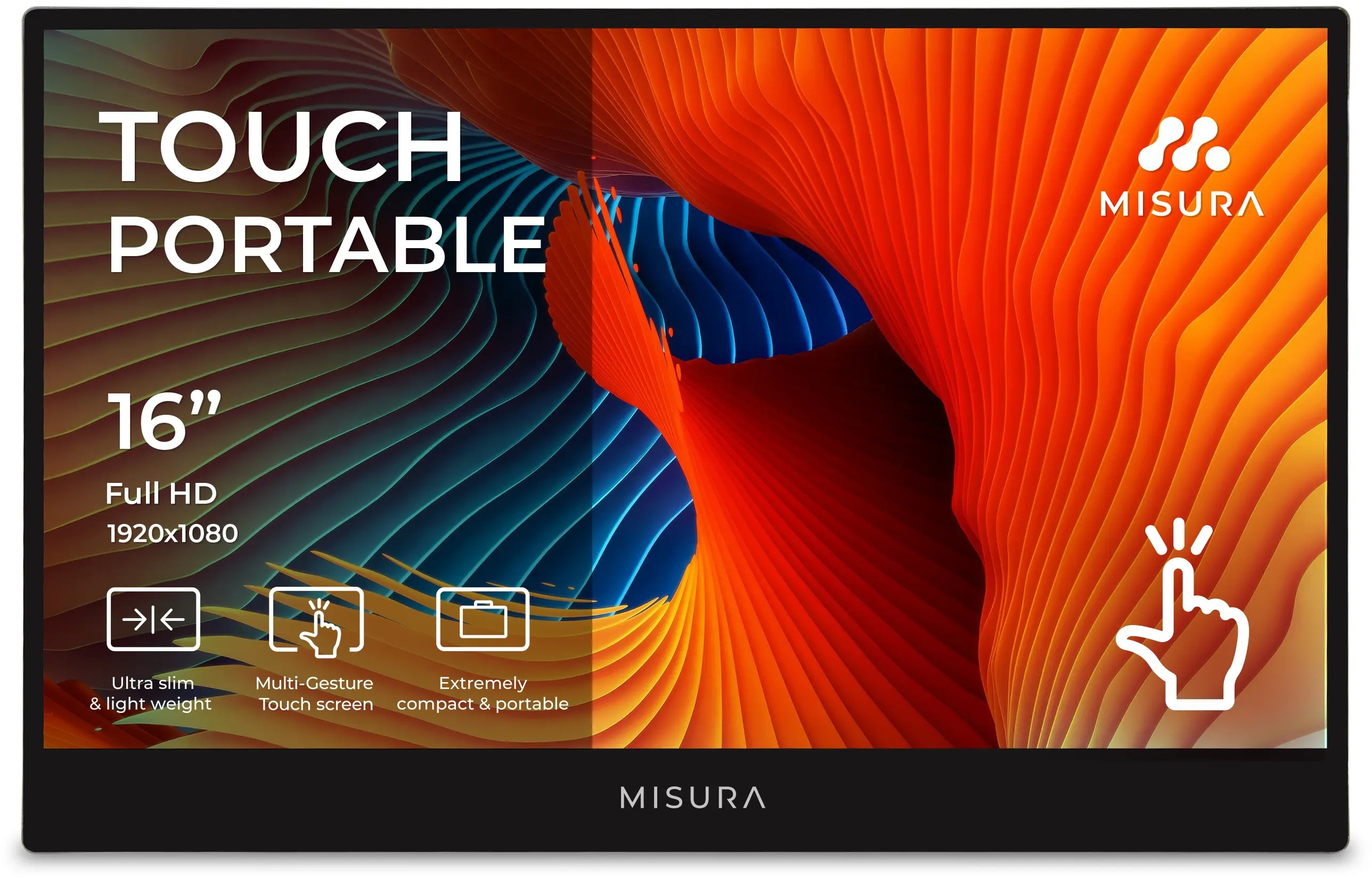 Monitor – IPS, prenosný, Full HD 1920 × 1080 (16 : 9), 60 Hz, lesklý displej,, 30 ms, dotyková obrazovka, reproduktory, HDMI a USB-C Navýšte svoju efektivitu pomocou ďalšieho monitoraSte často na cestách a nestačí vám mať iba obrazovku malého notebooku? Zakúpte si prenosný LCD monitor MISRUA M16T a rozšírte plochu pre prácu aj zába