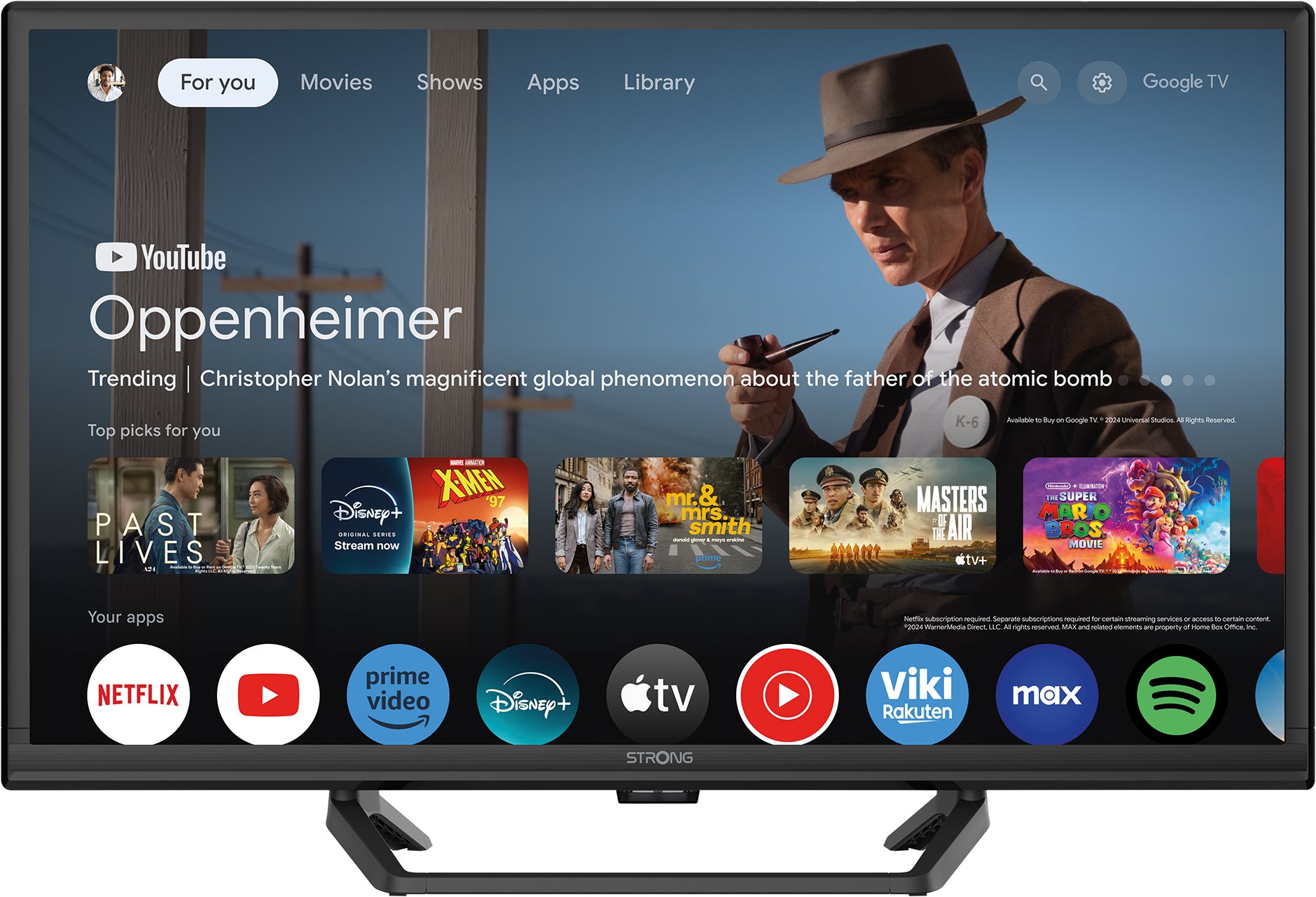 Televízor – Google TV, LED, 61 cm, HD Ready, 50/60 Hz, HDR10, DVB-T2/S2/C, 2× HDMI, 1× USB, CI+, WiFi, Bluetooth, Chromecast, hlasové ovládanie, Google Assistant, napájanie na 12 V, Oneplay, VESA 200 × 100, repro 4 W, energetická trieda D STRONG SRT24HG4723C ako váš nový televízor na cestovanieZažite dokonalú kombináciu flexibility a výkonu s prenosným TV STRONG SRT24HG4723C. Vďaka kompaktnej 24-palcovej obrazovke a možnosti napájania