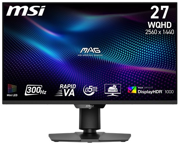 Monitor – VA, Quad HD 2560 × 1440 (16 : 9), 300 Hz, antireflexný displej, mini LED podsvietenie, 10 bit, 1 ms, Adaptive-Sync, nastaviteľná výška, pivot, HDR, HDMI a DisplayPort, VESA Nadchnite sa hraním svojich obľúbených titulov s 27″ LCD monitorom MSI s kvalitným Quad HD (2560 × 1440) rozlíšením. Plynulý obraz vám zabezpečí VA panel s obnovovacou frekvenciou až 300 Hz a dobou od