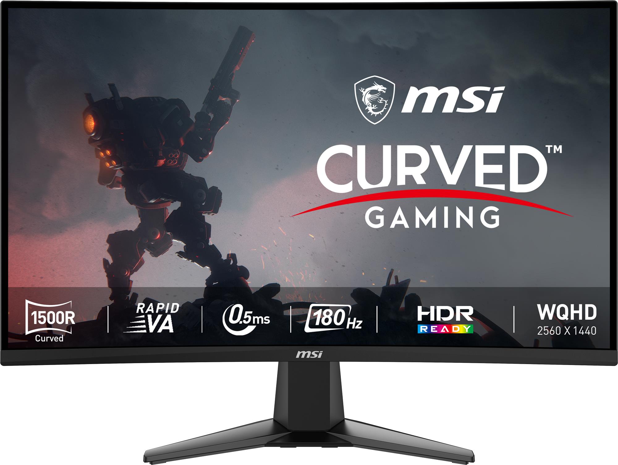 Monitor – VA, prehnutý, Quad HD 2560 × 1440 (16 : 9), 180 Hz, antireflexný displej, 10 bit, 0,5 ms, HDMI a DisplayPort, VESA Doprajte si svoje obľúbené hry s 27″ LCD prehnutým monitorom MSI s kvalitným Quad HD (2560 × 1440) rozlíšením. Plynulý obraz vám poskytne VA panel s obnovovacou frekvenciou až 180 Hz a dobou odozvy 0,