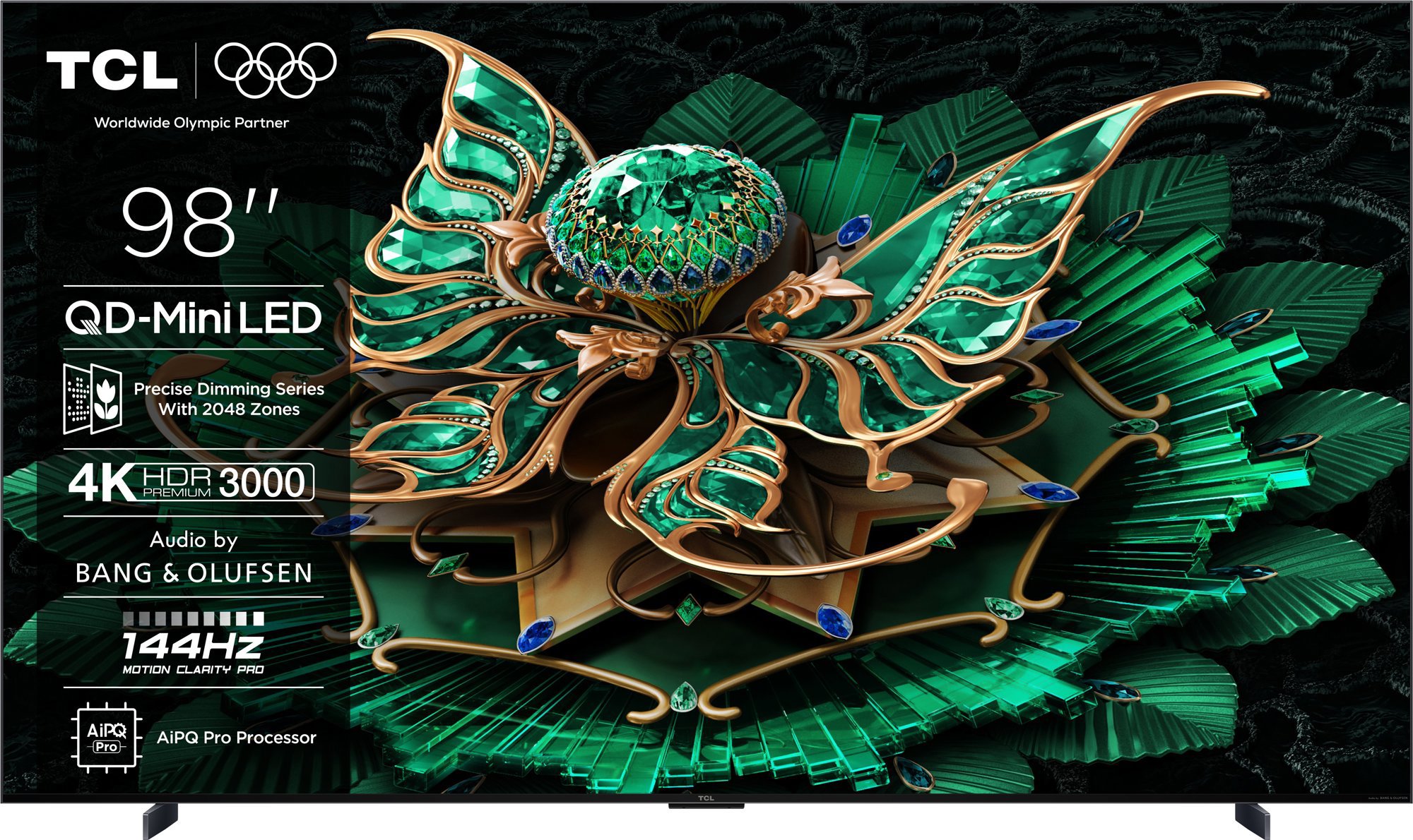 Televízor – Google TV, Mini LED, 249 cm, 4K Ultra HD, 100/120 Hz (144 Hz – herný režim), HDR10+, Dolby Vision, lokálne stmievanie (2048 zón), antireflexný obraz, DVB-T2/S2/C, 4× HDMI, 1× USB, CI+, WiFi, Bluetooth, DLNA, Chromecast, Miracast, herný režim, hlasové ovládanie, Google Assistant, Apple Airplay 2, Oneplay, VESA 600 × 500, repro 60 W, DTS:X, Dolby Atmos, vstavaný subwoofer, energetická trieda E Google TV TCL 98C7KRad QD-Mini LED Precise DimmingTCL QD-Mini LED spája prednosti technológií QLED a OLED, a mení tak tradičné podsvietenie na osvetlenie s presnosťou takmer na úroveň jednotlivých pix