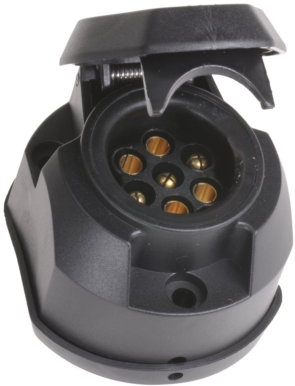 Zásuvka – 7 pin, 12 V, materiál plast, dodávané vrátane gumového tesnenia Univerzálna plastová zásuvka ťažného zariadenia ACI 7 pin s tesnením na 12 V. Vysoká kvalita použitých materiálov, jednoduchá montáž na vaše auto zaručuje spoľahlivé pripojenie vášho prívesu. Kľúčové