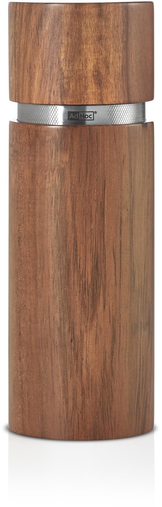 Mlynček na korenie – ručný, nastaviteľná hrubosť mletia, materiál konštrukcie drevo, nerez a oceľ, keramický mlecí mechanizmus, rozmery 19 × 6,5 cm (výška × priemer) AdHoc Mlynček ručný na korenie a soľ Profi je praktický kuchynský doplnok, s ktorým môžete namlieť soľ aj ďalšie druhy korenia, a tak sa vám bude hodiť na dochucovanie jedál. Nastaviteľný mechanizmus
