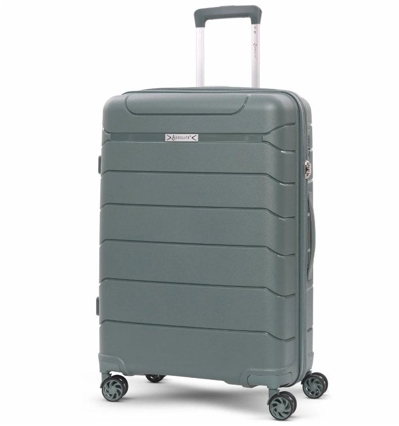 Cestovný kufor – na kolieskach, stredný, škrupinový, objem 67 l, rozmery 66 × 44 × 26 cm (V׊×H), upínacie pásy, vnútorné vrecko a vnútorná deliaca priehradka, 4 otočné a zdvojené kolieska, zapínanie dvojcestným zipsom, TSA zámok, bočné a horné držadlo, zelená farba, hmotnosť 3,31 kg