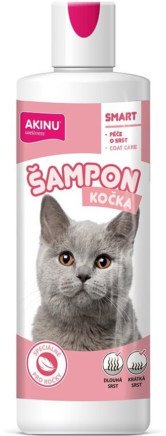 Šampón pre mačky objem 250 ml, čistí srsť a na lesklú srsť Akinu šampón pre mačky je jemný a hodí sa pre krátkosrsté aj dlhosrsté miláčikov. Stačí naniesť skutočne malé množstvo a bohatá pena sa postará o dôkladné, ale šetrné umývanie. Srsť bude po umytí lesk