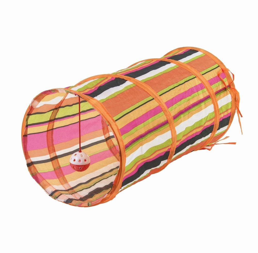Hračka pre mačky – vhodná na výcvik a s povrazom, veľkosť 55 cm, materiál látka Zábavný farebný tunel pre mačky Akinu z praktického nylonu zaujme aj najväčších mrzútov. Mačací tunel poskytuje priestor, kde sa môžu mačky hrať, skrývať sa a stimulovať svoj lovecký inštinkt. Tunel