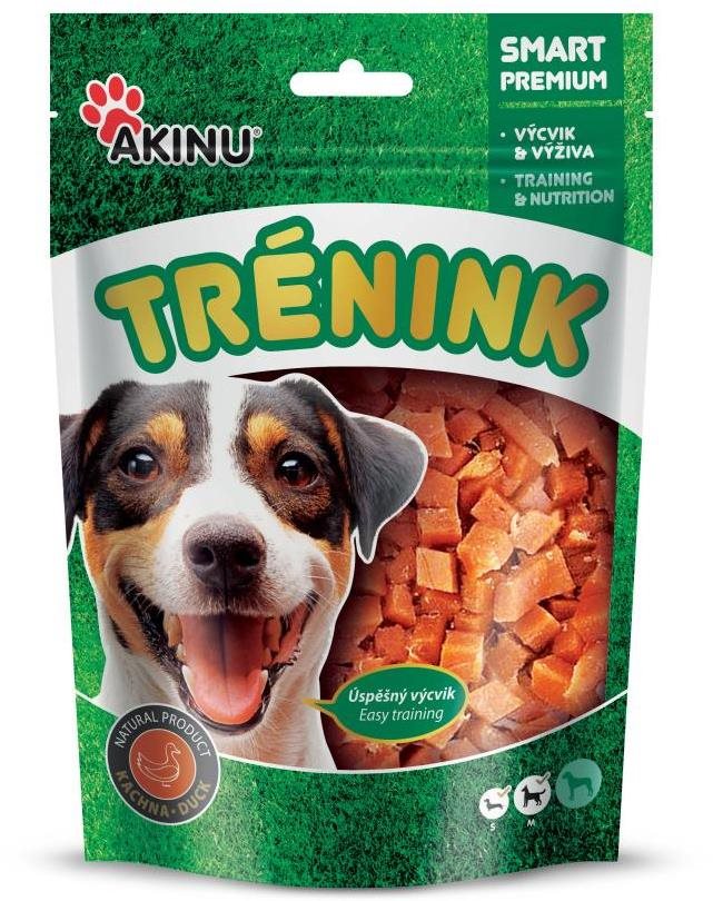 Maškrty pre psov – bez obmedzenia veku s normálnou aktivitou, kačacia príchuť, hmotnosť balenia 0,12 kg, suché, hrubé bielkoviny 30 %, tuky (rastlinný), bez obilnín, špecifiká zloženia hypoalergénne Akinu tréningové kačacie kocky pre psov sú nakrájané na malé kocky a tak sú pripravené rovno na odmeňovanie. Kačacie mäso je veľmi dobre stráviteľné a chutné, zároveň je zdrojom vysoko kvalitných biel