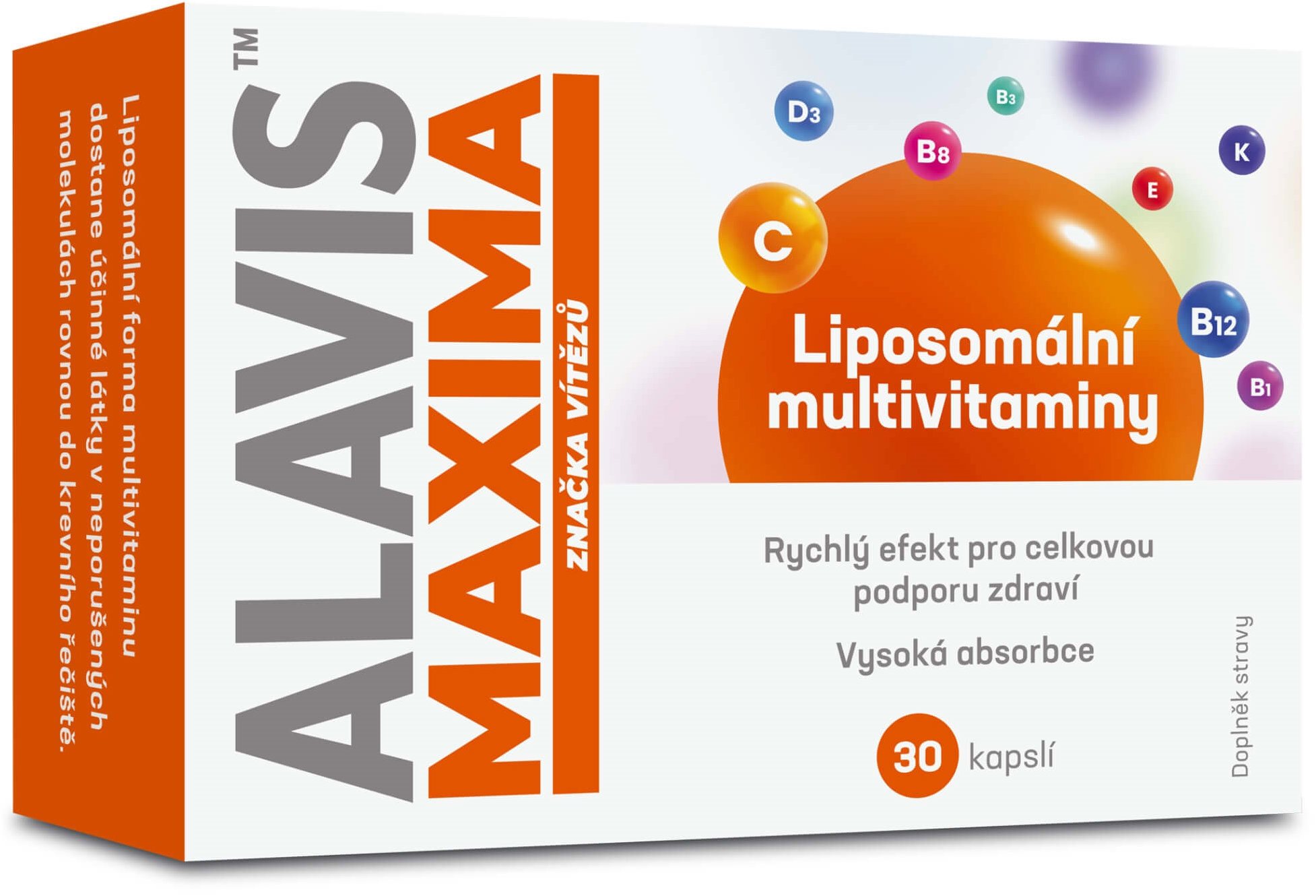 Multivitamín – kombinácia vitamínu C (90 mg), vitamínu B3 (19 mg), vitamínu E (6 mg) v 1 kapsule, bez lepku, vhodné pre vegetariánov i vegánov, 30 kapsúl ALAVIS MAXIMA Lipozomálny multivitamín30 kapsúlŠpeciálny multivitamínový komplex v lipozomálnej forme s obsahom až 16 aktívnych látok v jednej rastlinnej kapsule.Najmodernejšia forma spracovania do li