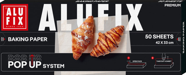 Papier na pečenie – silikónovaný, rezaný na rozmer 42 × 33 cm (D׊), maximálna teplota 220 °C, 50 kusov v balení Klíčové přednosti produktu ALUFIX Papír na pečení (50 ks) Pečicí papír Alufix zabrání připálení…