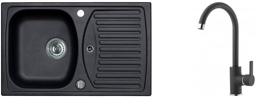 Set drezu a batérie – DREZ:, bez vaničky, s odkvapom, granitový materiál, s pripojením na umývačku, farba čierna, celkové rozmery drezu: 78 cm × 48 cm × 20 cm (D׊×H), rozmer vane: 35,9 × 39,9…