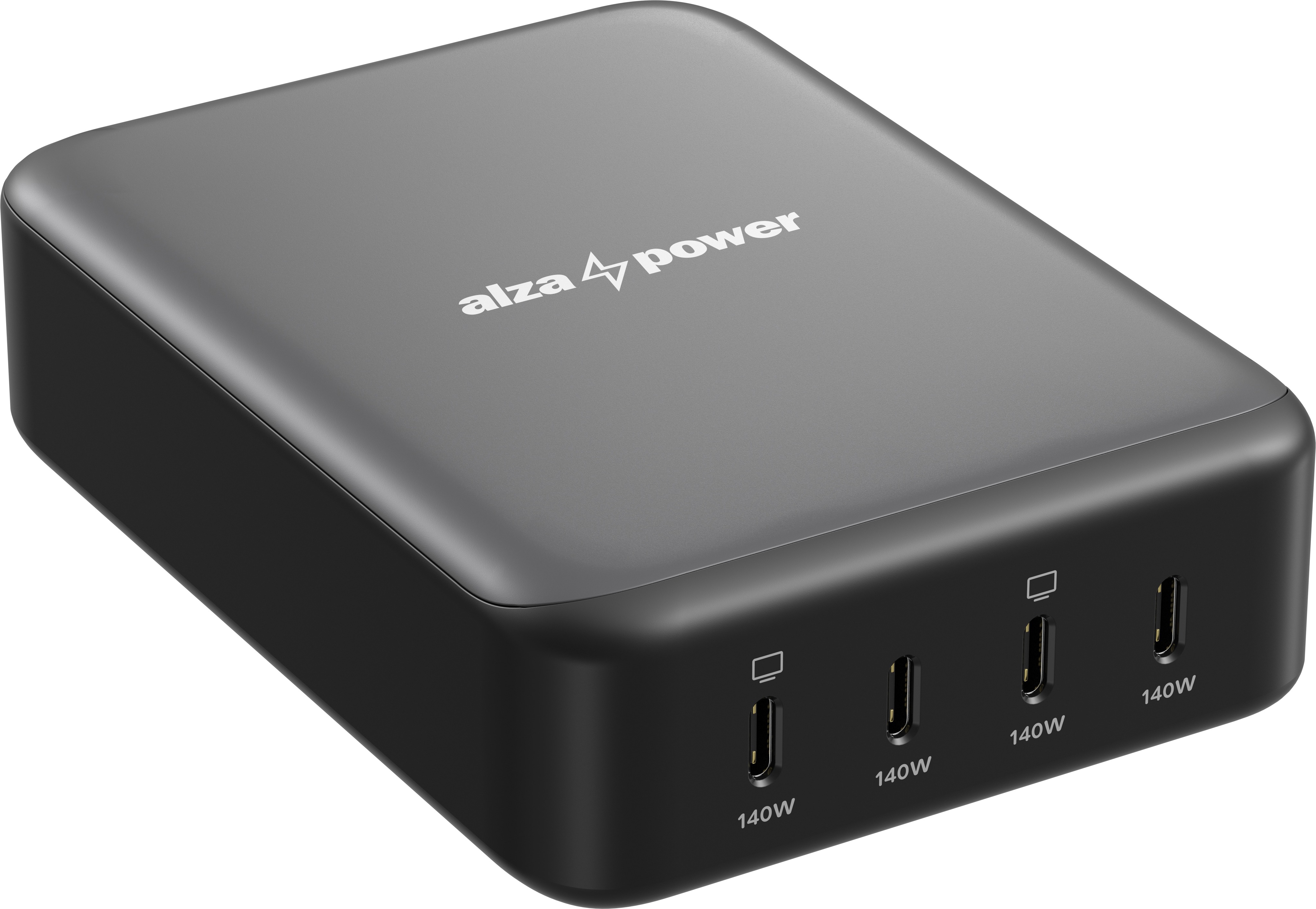 Napájací hub – univerzálny, s technológiou GaN, celkový kombinovaný výkon až 240 W, 4× USB-C, podpora Power Delivery 3.1 s PPS (až 140 W), bezpečnostná ochrana 4safe proti skratu, prepätiu, preťaženiu a prehriatiu, Smart IC (automatická detekcia pripojeného zariadenia a optimálna distribúcia výkonu), pre mobilné telefóny, tablety, notebooky, MacBooky a ďalšie podobné zariadenia, praktický stojan, súčasťou odnímateľný kábel s IEC C7 konektorom (1 m) GaN napájací hub so štyrmi výstupmi, podporou rýchlonabíjania v minimalistickom dizajneS výkonným a vysoko účinným sieťovým napájacím hubom AlzaPower MG9604C pohodlne nabijete mobilný telefón, tablet