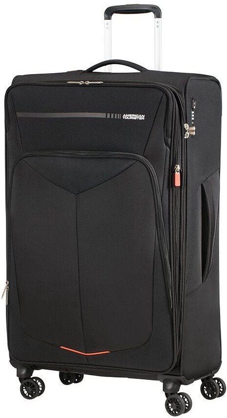 Cestovný kufor – na kolieskach, veľký, textilné, objem 109,5 l, rozmery 79 × 46,5 × 30,5 cm (V׊×H), expander, upínacie pásy a vonkajšie vrecko, 4 otočné kolieska, zapínanie zipsom, TSA zámok, teleskopické, bočné a horné držadlo, čierna farba, hmotnosť 3,4 kg Kufor American Tourister Summerfunk Spinner je kvalitná spoľahlivá batožina, do ktorej sa bez problémov zbalíte na dlhšiu dovolenku. Je vyrobený zo 100% syntetickej textílie . Pri cestovaní sa vám s n