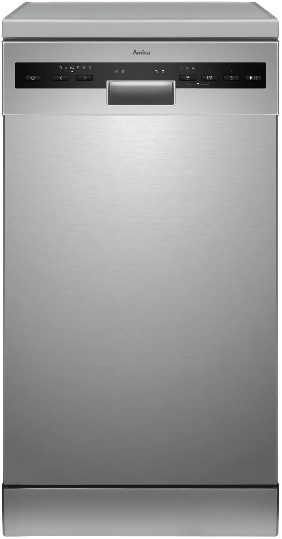 Umývačka riadu – energetická trieda E, hlučnosť 49 dB,, detská poistka a ochrana proti pretečeniu, zvukový signál ukončenia umývania, ukladanie príborov do koša, odnímateľný vrchný kryt, rozmery 84,5 × 44,8 × 60 cm (V׊×H)