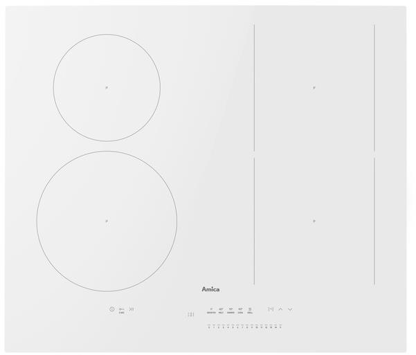 Varná doska – indukčná, vstavaná, 4 platničky, automatická detekcia riadu, detská poistka a power management, booster, časovač, dotykové ovládanie, rovné hrany, bez rámika, vzhľad biele sklo, povrch sklo, pripojenie 230 V a 400 V, rozmery 59,2 × 52,2 × 4,9 cm (Š×H×V) Indukčná varná doska AMICA DI 6418 SBW predstavuje technologicky najvyspelejšie riešenie v rámci ponuky Amica a je určená pre náročných používateľov, ktorí očakávajú maximálnu kontrolu nad varením, vy