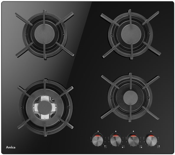 Varná doska – plynová, vstavaná, 4 platničky, poistka horáka, elektrické zapaľovanie, otočné gombíky, bez rámika, vzhľad čierne sklo, povrch sklo, pripojenie 230 V a zemný plyn, rozmery 59 × 52 × 5,2 cm (Š×H×V), na zapojenie spotrebiča je potrebný plynár Plynová varná doska AMICA DP 6411 LZBG kombinuje tradičný spôsob varenia na plyne s moderným vyhotovením „plyn na skle“, ktoré pôsobí elegantne a zároveň sa veľmi ľahko udržuje. Štyri varné zóny vráta