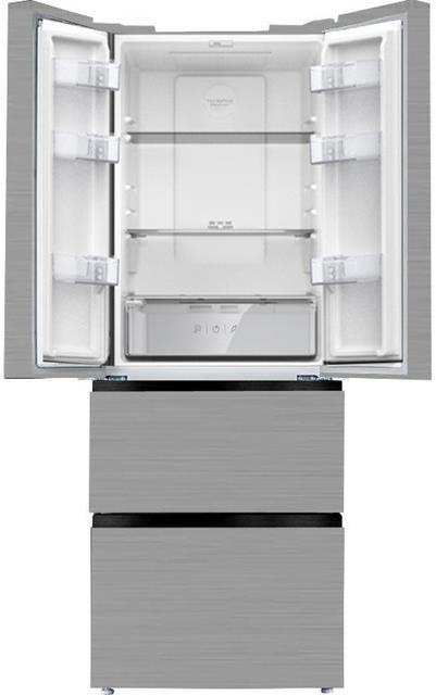 Americká chladnička – dvojdverová, energetická trieda E, objem chladničky 228 l, objem mrazničky 129 l, voliteľné umiestnenie pántov, 3 police, 2 priehradky v mrazničke, 2 chladiace okruhy, displej a LED osvetlenie, rozmery 180,3 × 65,4 × 71,7 cm (V׊×H) Americká chladnička AMICA FY3259.3DFBX v nehrdzavejúcom vyhotovení ponúka celkový objem 357 l, z toho 228 l v chladiacej časti a 129 l v mrazničke. Spotrebič patrí do energetickej triedy E s ročnou sp