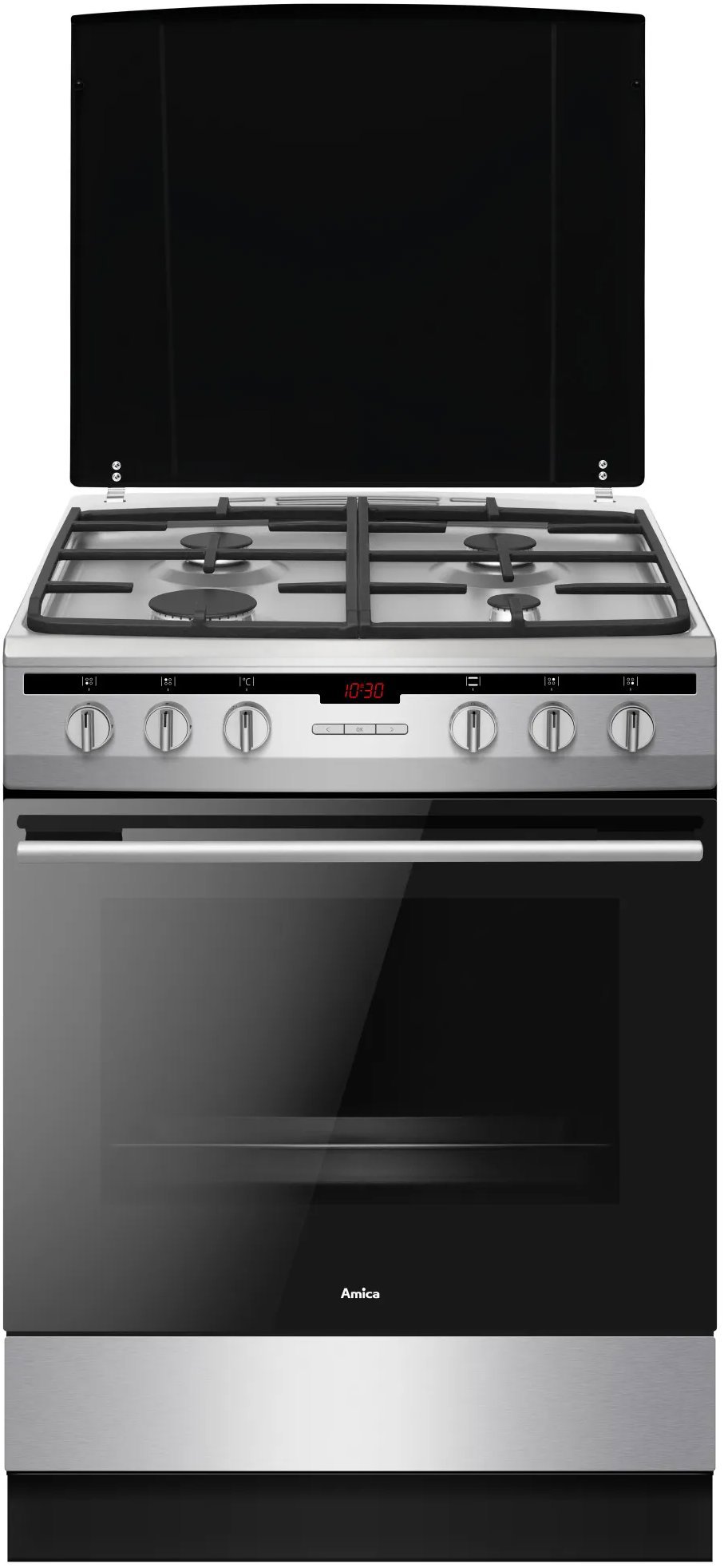 Sporák – kombinovaný, energetická trieda A, rozmery 85 × 60 × 60 cm (V׊×H), 4 platničky, VARNÁ DOSKA: bezpečnostná poistka horáka, automatické zapaľovanie a integrované zapaľovanie, ovládanie pomocou otočných gombíkov, liatinová mriežka súčasťou dosky, RÚRA: programy rúry rýchle predhriatie, gril, spodný ohrev, dolný + horný ohrev, rozmrazovanie, pizza a pravý horúci vzduch, čierna a antikorová farba Máte v pláne zaobstarať si novú kuchyňu či nový sporák? Kombinovaný sporák s plynovou varnou doskou AMICA bude vyhovovať vašim potrebám pri každodennom varení. Jeho príkon je 3,1 kW. Na prípravu všetk