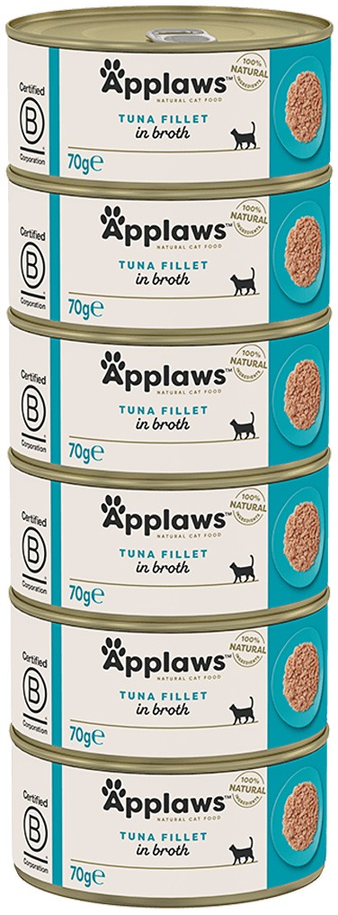 Konzerva pre mačky – pre veľké plemená dospelého veku s normálnou aktivitou, tuniaková príchuť, hmotnosť balenia 0,42 kg, mokré, hrubé bielkoviny 16 %, tuky 1 %, bez obilnín, špecifiká zloženia bez konzervantov a hypoalergénne Konzerva pre mačky Applaws je vyrobená zo 100 % prírodných zložiek a obsahuje 75 % mäsa. Slúži ako doplnkové krmivo pre malé a veľké plemená s bežnou aktivitou. Vďaka ľahkej stráviteľnosti a vysokej