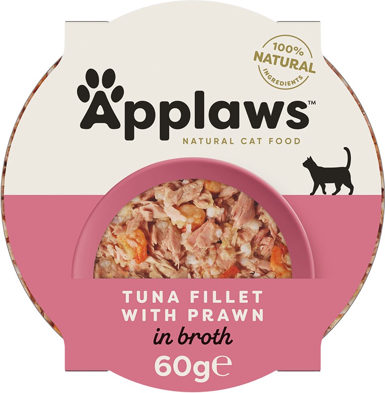 Vanička pre mačky – určená pre dospelé mačky všetkých plemien s normálnou aktivitou, obsahuje 60 % mäsa, krevetová a rybia príchuť, hmotnosť balenia 0,06 kg, bez konzervantov Miska s rybím mäsom Applaws Cat Pot tuniak a krevety je doplnkové krmivo určené pre dospelé mačky. Každá vanička obsahuje 60 % rybieho mäsa, ktoré je podávané v rybom vývare. Vďaka vyššiemu podielu te