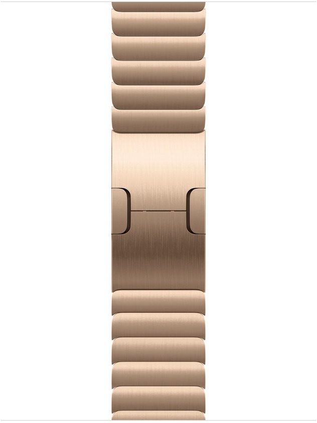 Remienok na hodinky – pre Apple Watch 38/40/41 mm a 42 mm (Apple Watch Series 10), materiál nehrdzavejúca oceľ, na obvod zápästia od 13,5 do 19,5 cm, zlatá farba Najštýlovejší výber široko ďalekoNové materiály, nové štýly, nové farby. Vyber si z najnovšej kolekcie remienkov k Apple Watch. Kúpiť remienkyApple Watch, 42 mm, zlatý, článkovaný remienokČlánkovaný r