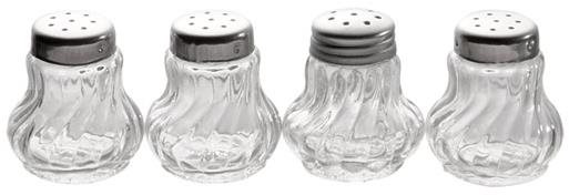Menážka – 4 kusy v súprave s dávkovacími zásobníkmi na soľ, na čierne korenie a na korenie, materiál sklo a oceľ, výška 40 mm, vhodná do umývačky riadu Súprava štyroch mini koreničiek z priehľadného skla je určená na soľ, korenie, alebo ďalšie dochucovadlá. Súprava nádobiek APS 40503 obsahuje koreničky vysoké iba 4 cm a v kuchyni ani na stole
