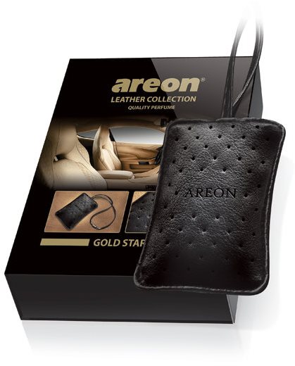 Vôňa do auta – citrusová, drevitá, ovocná, kvetinová, sladká a neutrálna, vankúšik na zavesenie, výdrž až 365,24 d, 1 kus v balení, rozmery 135 × 117 × 40 mm (V׊×H) Zásadné vlastnosti vône do auta AREON LEATHER COLLECTION – Gold Star Vôňa do auta Areon dodá vozidlu príjemnú atmosféru počas každého cestovania Ponúkanú vôňu možno jednoducho zavesiť Vydrží vám voňať