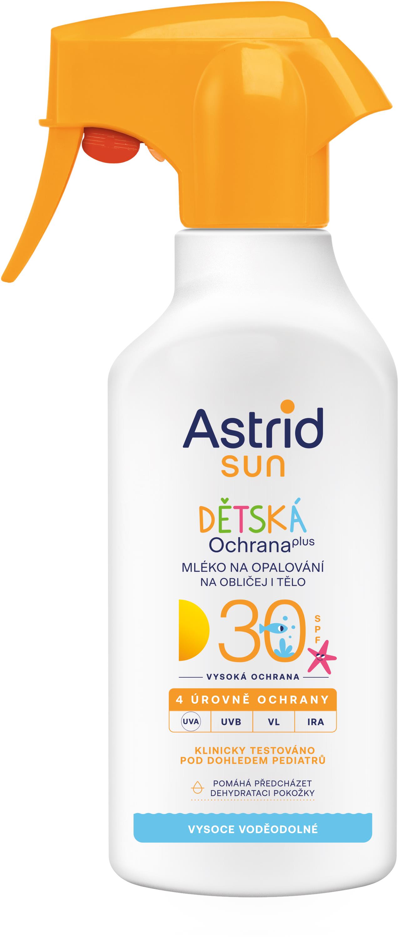 Sprej na opaľovanie – Pre deti, ochranný faktor 30, na tvár a na telo, na citlivú, mastnú, normálnu, zmiešanú, suchú a zrelú pokožku, objem 200 ml Chcete spoľahlivú ochranu pred slnečným žiarením? Spoľahnite sa na opaľovací sprej ASTRID s objemom 200 ml. Dôležitú ochranu poskytne ochranný faktor 30 SPF . Zaiste vás zaujme aj jeho opaľovací účino