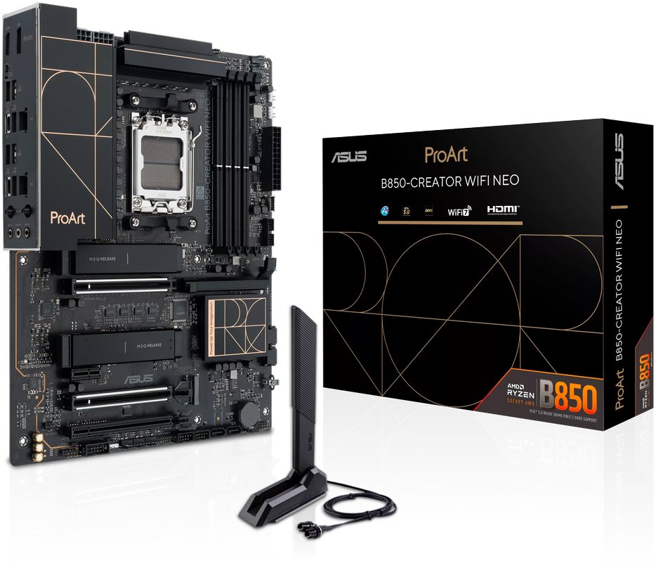 Základná doska – AMD B850, socket AMD AM5, rozmer ATX, 4× DDR5, 9000 MHz (OC), 3× PCIe x16, 4× SATA III, 3× M.2, RJ-45 (LAN) 5 Gbps, 4× USB 3.2 Gen 2, 4× USB 2.0, DisplayPort 1.4, HDMI 2.1, 7.1 zvuková karta Základná doska od výrobcu ASUS je tvorená čipsetom AMD B850 a na uloženie CPU je pripravený socket AMD AM5. Jej súčasťou je zvuková karta, ktorá sa skvele postará o 7.1 kanálov. Pripravený pre vás je