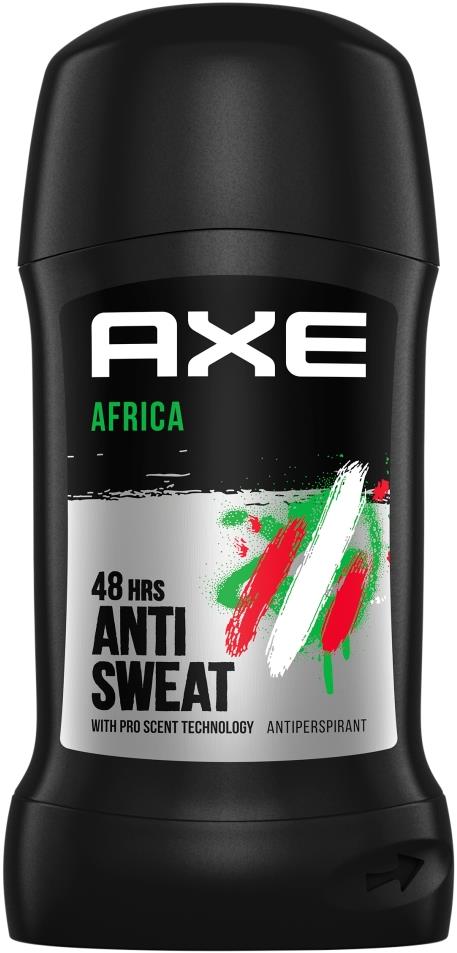 Dezodorant – pánsky, tuhý, vhodný na mastnú, normálnu, zmiešanú, suchú a zrelú pokožku, citrusová vôňa, antibakteriálny a hydratačný, dlhotrvajúci, nezanecháva škvrny, bez alkoholu, objem 50 ml Pánsky tuhý antiperspirant AXE Africa. Spoľahlivá ochrana proti poteniu. Doplnok štýlu moderného muža. Exotická vôňa s tónmi citrusových plodov a jantáru. Aplikuj do podpazušia a nechaj vstrebať. Spoľ