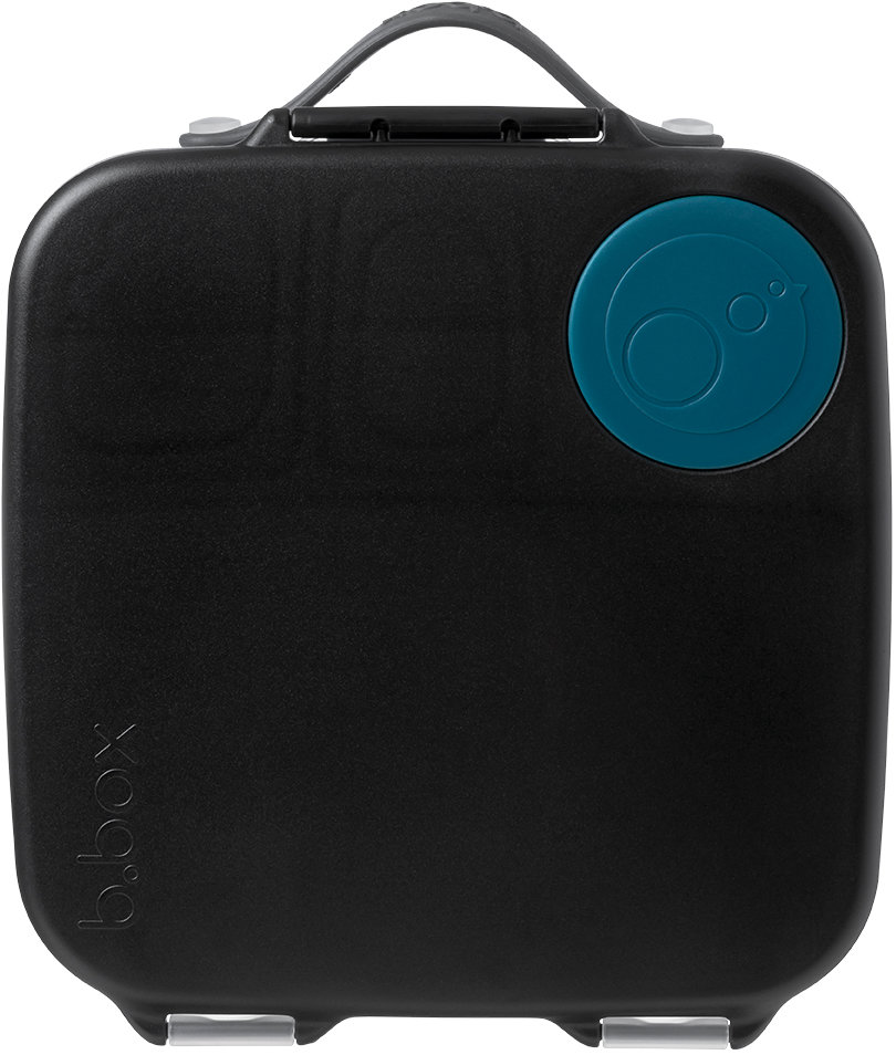 Desiatový box – delený, detský, objem 2 l, rozmery 25,7 × 21,5 × 7,3 cm (V׊×H), veko s klipmi, ucho na prenášanie súčasťou, vhodný do umývačky a mikrovlnnej rúry, materiál silikón a polypropylén, čierna a zelená farba Detský box na desiatu b.box vybavený pevnými klipmi zaistí bezpečné uzavretie obsahu a disponuje celkovým objemom 2 l. Variabilné využitie priestoru zaisťuje pevná priečka v kombinácii s vyberateľnou