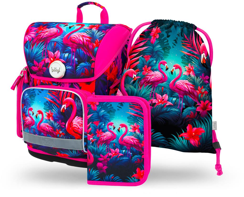 BAAGL 3 Set Ergo Plameniaky: aktovka, peračník, vrecko