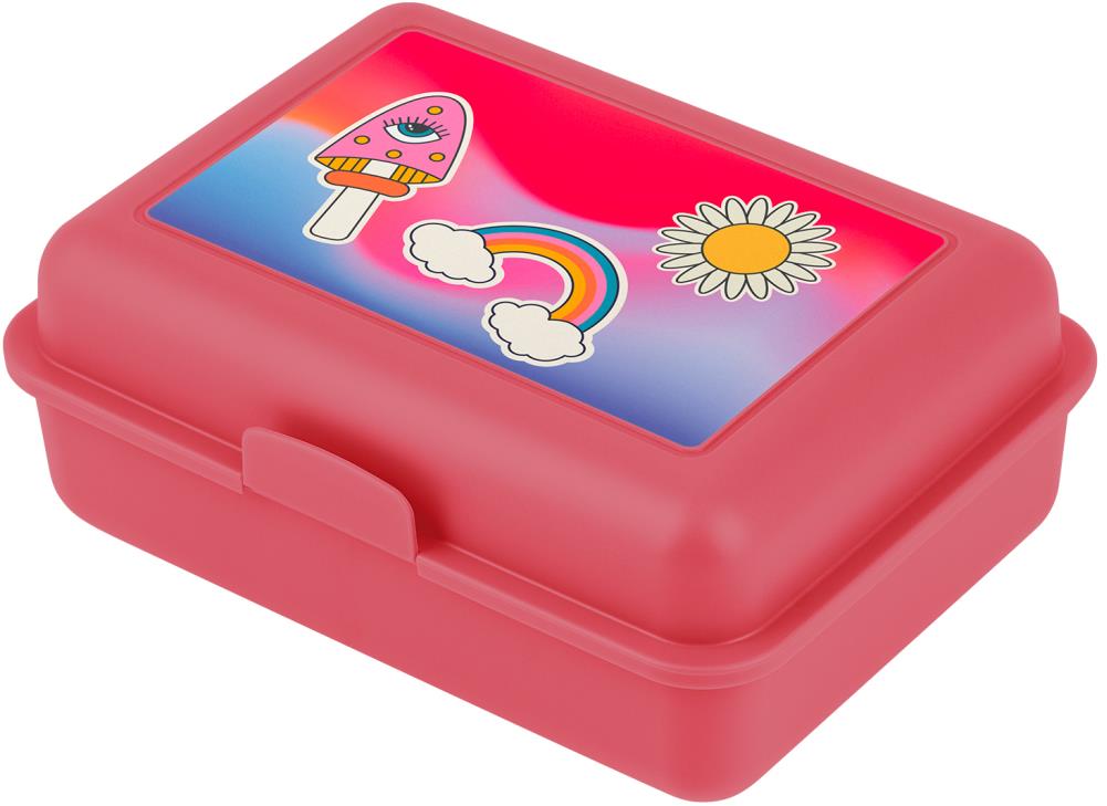 Desiatový box – delený, detský, rozmery 6 × 17,8 × 12,2 cm (V׊×H), veko s klipmi, materiál plast, ružová farba, kvetinový a dúhový motív Detský box na desiatu Baagl s pevnými klipmi zaistí bezpečné uzavretie…