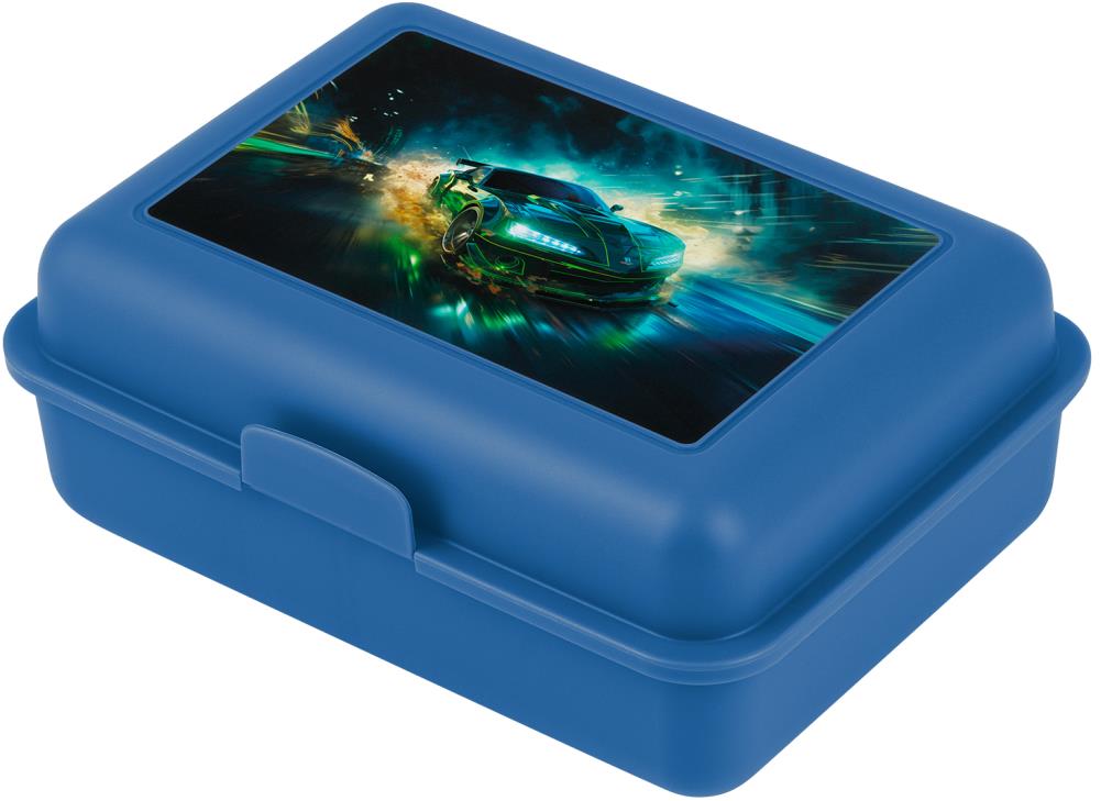 Desiatový box – delený, detský, rozmery 6 × 17,8 × 12,2 cm (V׊×H), veko s klipmi, materiál plast, modrá farba, dopravná motív Detský box na desiatu Baagl vybavený pevnými klipmi zaistí bezpečné uzavretie obsahu. Vnútorná priehradka je vyberateľná, a tak ho možno prispôsobiť podľa potreby. Kľúčové vlastnosti desiatového boxu