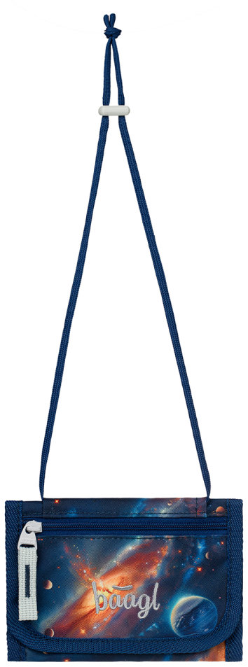 Peňaženka – detská, polyesterová, s vreckom na mince a bankovky, s priehradkou na karty a doklady, na 2 karty, zapínanie na suchý zips, so šnúrkou na krk, každodenné využitie, modrá farba, rozmery 10 × 14 × 1 cm (V׊×D) Nechcete, aby vaše deti postrácali svoje peniaze? Zaobstarajte im ich vlastnú peňaženku. Na každodenné nosenie si budú chváliť detskú peňaženku Baagl. Detskú pozornosť vzbudí jej modrá farba, predovše