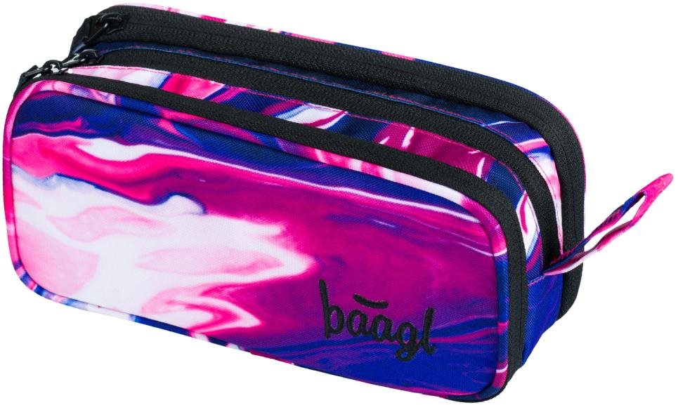 Puzdro do školy – pre dievčatá od 6 rokov, komory s pútkami vnútri, trojposchodové, s pútkom a vystuženými stenami, rozmery 9 × 23 × 11 cm (D׊×V), biela, fialová a ružová farba, motív vesmír Puzdro do školy Baagl ponúka tri vrecká, do ktorých sa zmestia všetky školské potreby. Elastické pútka umiestnené vnútri chlopní zaistia bezpečné uloženie ceruziek, pier aj pasteliek. Vďaka vystuženým