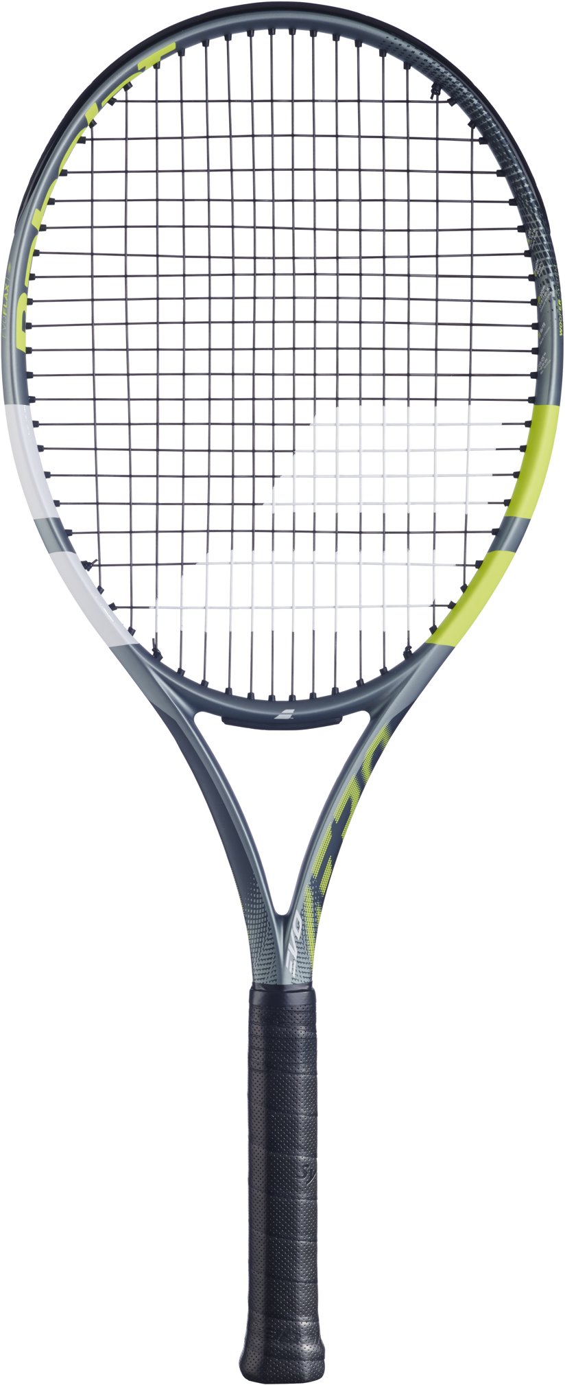 Tenisová raketa vypletená s vyvážením na stred, hmotnosť 275 g, dĺžka 68,5 cm, plocha výpletu 660 cm2 (midplus veľkosť), grip veľkosti 3
