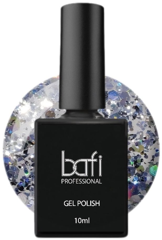 Lak na nechty – gélový, vytvára trblietavý efekt, do UV lampy a dlhotrvajúci, spevňujúci, určený na štiepiace sa nechty a na tvrdé nechty, strieborná farba, objem 10 ml Lak na nechty Bafi Gel polish Rainbow 02 vytvára na nechtoch dokonalý lesk a ľahko sa aplikuje vďaka hustej konzistencii. Jeho samonivelačné zloženie vyrovnáva povrch nechtu a zaisťuje dokonalé krytie
