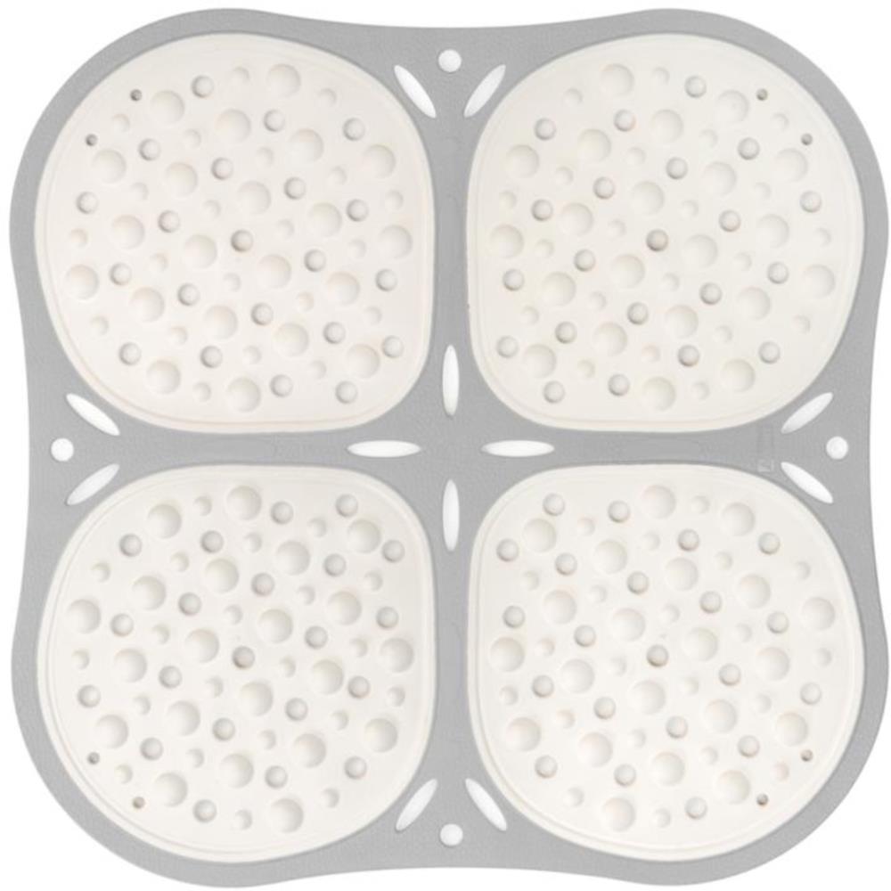 Protišmyková podložka do vane alebo sprchy – vhodná tiež do detskej vaničky, štvorcový tvar, rozmery 53 × 53 cm (Š×D), s prísavkami, plastová, biela farba Kľúčové prednosti protišmykovej podložky do vane Bama Masážna protišmyková sprchová…