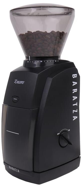 Mlynček na kávu – príkon 110 W, osadený mlecími kameňmi, kovový mlecí mechanizmus, s kónickými kameňmi, 40 možných volieb hrubosti mletia, veľkosť zásobníka 280 g, s časovačom, s poistkou proti prehriatiu, s protišmykovými nožičkami, materiál tela plast, nádoba na mletú kávu a násypka súčasťou balenia, výška 35 cm, dĺžka kábla 1 m, hlučnosť 88 dB, hmotnosť 3,5 kg, čierna farba Mlynček na kávu Baratza EncoreV čiernom farebnom vyhotoveníElektrický mlynček Baratza Encore zaujme na prvý pohľad svojím elegantným, kompaktným vzhľadom. Napriek svojej veľkosti však ponúka vysokú kv
