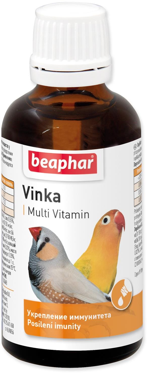 Doplnok stravy pre vtáky – pre všetky druhy, objem 50 ml Kvapky Beaphar Vinka posilňujú prirodzenú obranyschopnosť vtákov a pomáhajú im prekonať stresové situácie, ktoré môžu nastať napríklad pri výstavách alebo počas obdobia rozmnožovania. Pravidelné užíva
