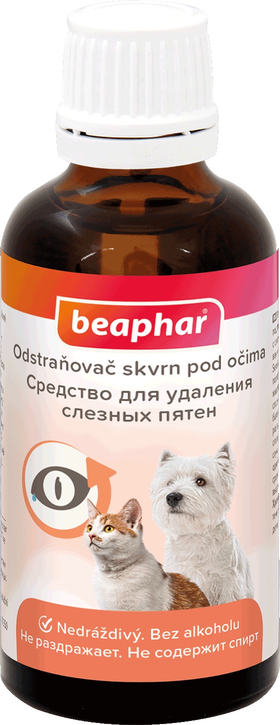 Starostlivosť o oči – prípravok na odstránenie škvŕn a usadenín pod očami psov, mačiek a kožušinových zvierat Odstraňovač škvŕn pod očami Beaphar bol vyvinutý pre domácich miláčikov, ktorí mávajú škvrny pod očami spôsobené slzením. Využijete ich tak najmä pre plemená so svetlou srsťou. Prípravok je jemný, ne