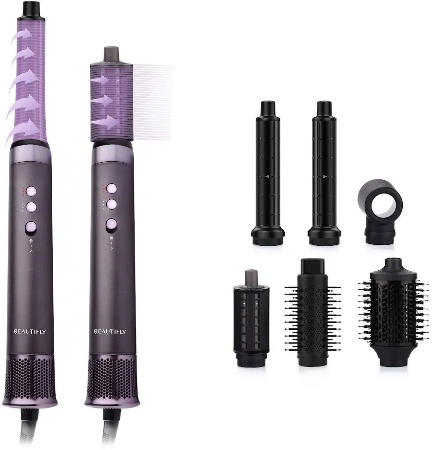Multistyler – sieťové napájanie, príkon 1300 W, ionizácia, studený vzduch, natáčanie, regulácia teploty, regulácia prúdenia vzduchu, 6 nadstavcov, a to koncentrátor, tvarovacia kefa, teplovzdušná kefa a nadstavec na vlny Multistyler Beautifly Hair Flow Pro StylerFlow Pro Styler na vlasy ponúka rôzne stylingové funkcie, vrátane kučeravenia, vlnenia, vyhladzovania a zabalenia vlasov. Umožňuje úplnú kontrolu nad objemom