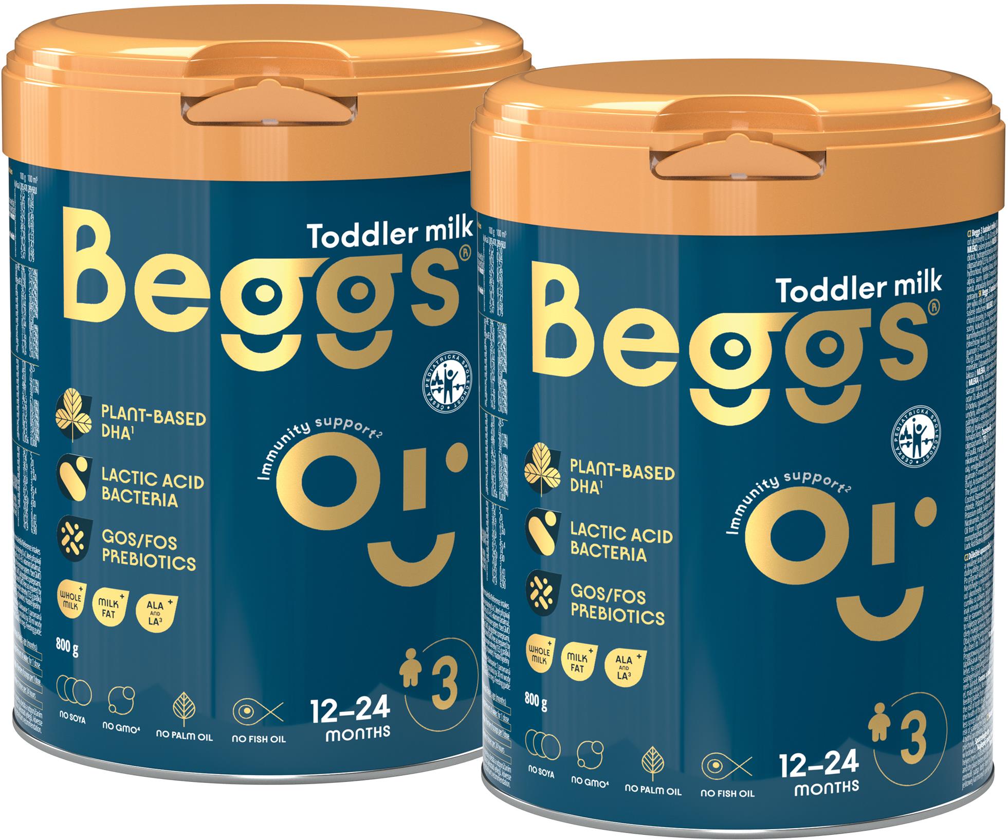 Dojčenské mlieko Beggs – batoľacie, bez sóje, pridané vitamíny a minerály, s probiotikami, s prebiotikami, s kravským mliekom (mliečny tuk) a bez palmového oleja, vhodné od 12 mesiace, veková kategória 3, celková hmotnosť 1600 g,…