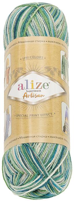 Priadza – materiál vlna, návin 420 m, pro velikost jehlic 2 mm a háčků 1 mm, modrá a zelená barva Ponožková příze s návinem 420 m Vlnika Artisan je vyrobena z vlny. Klubko o hmotnosti 100 g se hodí na pletení s jehlicemi o doporučené velikosti 2–4 mm nebo s háčky o doporučené velikosti