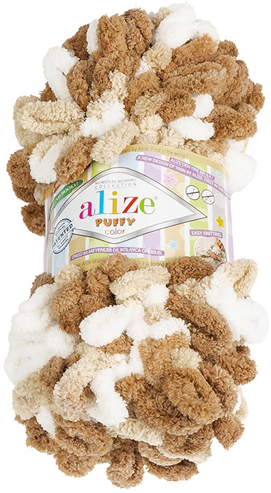 Priadza – materiál polyester, návin 9 m, pre veľkosť ihlíc 4 mm a háčika 3 mm, biela, hnedá a béžová farba Žinylková příze Vlnika Puffy Color sestává ze 100% polyesteru. V klubku o hmotnosti 100 g naleznete návin o délce 9 metrů. Příze se hodí na pletení s jehlicemi velikosti 4 mm nebo na háčkov