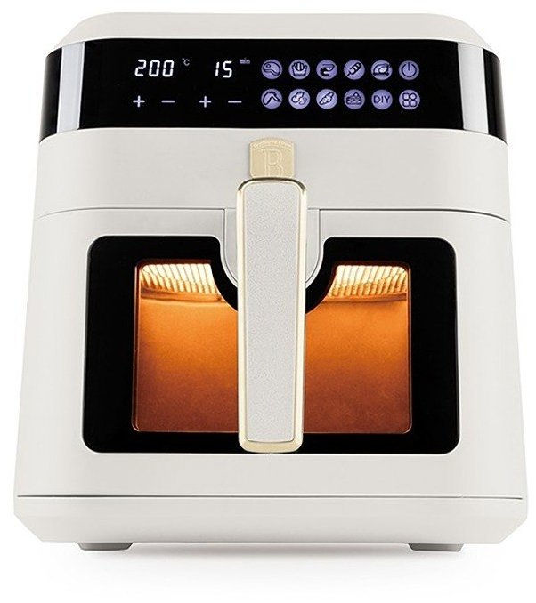 Teplovzdušná fritéza – digitálne ovládanie, nastaviteľná teplota od 80 do 200 °C, s nepriľnavým povrchom, s displejom, s ochranou proti prehriatiu, s vekom s priezorom, časti vhodné do umývačky, časovač a regulácia teploty, fritovací kôš súčasťou, príkon 1300 W, objem nádoby 6,3 l s nepriľnavým povrchom, 1 fritovací kôš, béžová farba Teplovzdušná fritéza BerlingerHaus BH-9546 umožňuje takmer bez oleja pripravovať rôzne pokrmy, ako sú hranolky, hamburgery, kuracie stehná, ryby, zelenina, muffiny, rôzne druhy mäsa, šišky alebo chleb