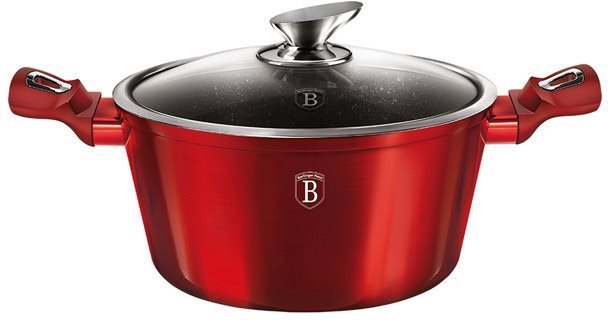 Kastról – mramorový, vhodný na plynovú, elektrickú, indukčnú a sklokeramickú varnú dosku, okrúhly tvar, objem 4,1 l, plastová rukoväť, ergonomická rukoväť, nepriľnavý povrch, použitie v rúre a možnosť umývania v umývačke, výška 12,5 cm, priemer 28 cm, pokrievka v balení, čierna a červená farba Varte zdravšie! Vďaka elegantnému kastrólu BerlingerHaus to pôjde ľahko a jednoducho. Nepriľnavý mramorový povrch umožňuje variť efektívne a bez pripaľovania. Špeciálne vyvinuté dno šetrí až 35% energ