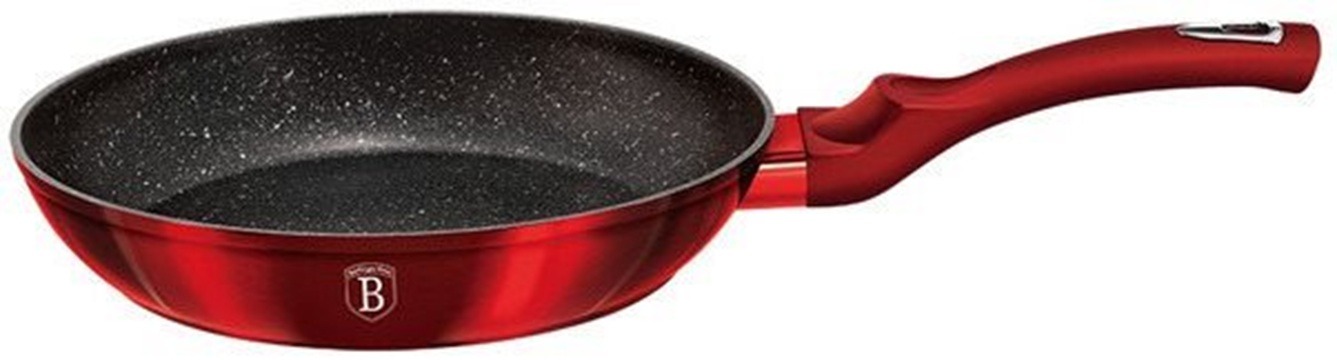 Panvica – mramorová, okrúhla, telo panvice z hliníka, vhodná na elektrickú, plynovú, sklokeramickú aj indukčnú varnú dosku, vhodná do rúry, možnosť umývania v umývačke a nepriľnavý povrch, hliníkový vonkajší povrch, ergonomická rukoväť, výška 4,8 cm, priemer horného okraja 24 cm, farba červená Zaobstarajte si BerlingerHaus Burgundy Metallic Line – panvicu pre začínajúcich i skúsených kuchárov. Panvica je vyrobená z vysoko odolného kovaného hliníka. Vďaka 3-vrstvovému nepriľnavému povrchu sa