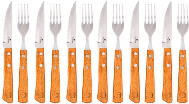Súprava príborov – jedálenská vidlička a steakový nôž, so zúbkovaným ostrím, 6 súprav s celkovým počtom 12 ks Kľúčové vlastnosti steakovej súpravy príborov BerlingerHaus BH-2105, 12 ksSúprava steakových príborov BerlingerHausUmožní vám vychutnať si doma svoje obľúbené steaky ako v reštauráciiV súprave nájdete