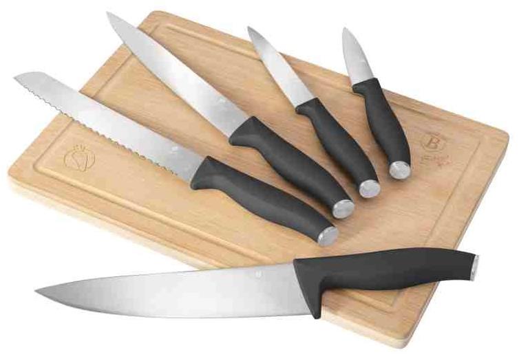 Sada nožov – kuchársky nôž, úžitkový nôž a okrajovací nôž, materiál rukoväti plast, materiál čepele nehrdzavejúca oceľ, 6 kusov v súprave Chystáte sa zaobstarať sadu nožov, s ktorou budete môcť krájať každú potravinu? Potom sa vám určite bude hodiť súprava nožov BerlingerHaus, ktorá patrí do základnej výbavy každej kuchyne. Táto sada ob